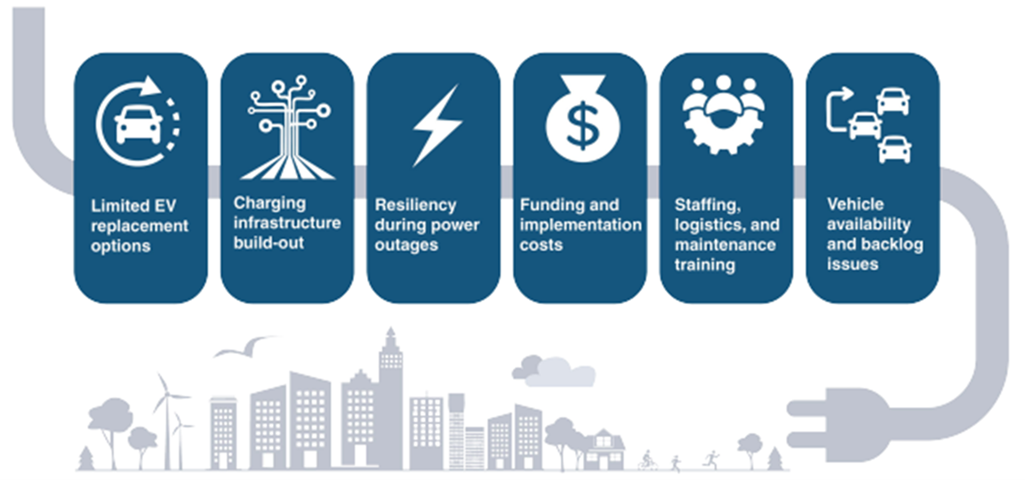 • Limited electric alternatives for specialized county needs, such as public safety vehicles, large vans, and heavy-duty equipment.