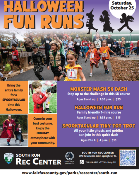 Halloween Fun Run (ages 5 and up). Family friendly 1-mile course. Starts 3:35 p.m. Cost $15.