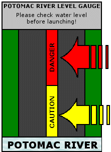 KNOW THE RIVER! Below is a link to NOAA's website with updated levels for the Potomac River watershed. Little Falls which appears in the lower right of the map is the closest recorded river level to Riverbend Park. When Little Falls reaches a level of 4.6 Riverbend Park's boat ramp is closed. Our ramp is closed at approximately 3.0 feet on our gauge.