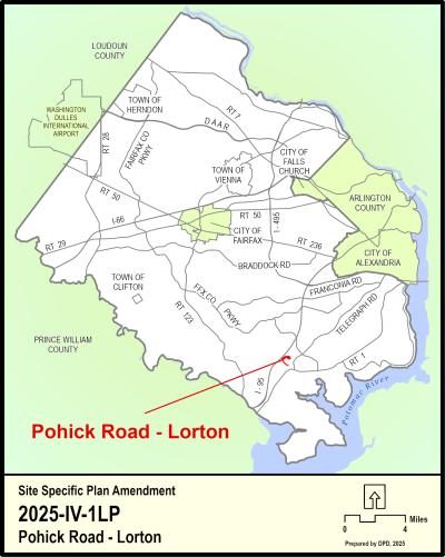On June 10, 2025, the Board of Supervisors (Board) authorized the consideration of a Plan Amendment for Tax Map parcels 108-1 ((1)) 1B, 30, and 30A, and 108-1 ((2)) B1, C and D for residential use, with considerations for tree preservation, landscape buffering, and compatible building heights to ensure an appropriate transition and scale to the surrounding single family residential area. Access onto Pohick Road and Lagrange Street should be studied carefully to ensure adequate and safe turning movements, and to minimize impacts to the residential neighborhood. Environmental concerns such as, but not limited to, steep slopes, marumsco soils, floodplain, EQC, RPA, noise and required setbacks from the CSX railroad will be of high importance and factored into the design of the proposal. Offsite active transportation improvements should be considered with the proposal to connect the site to the core of Lorton. Collaboration with the Parks Authority should be explored for the portions of the site that are to remain undeveloped.
