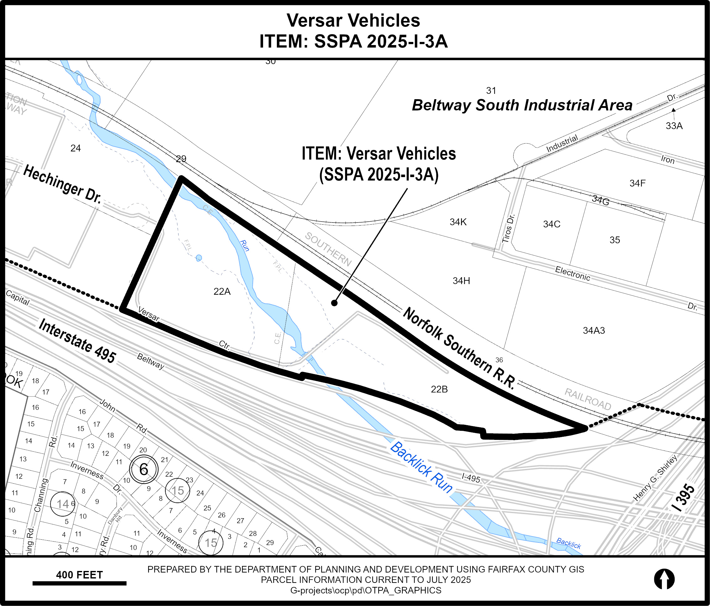 On June 10, 2025, the Board of Supervisors (Board) authorized the consideration of a Plan Amendment for Tax Map parcels 80-2 ((1)) 22A and 22B for vehicle sales, rental, service, and storage.