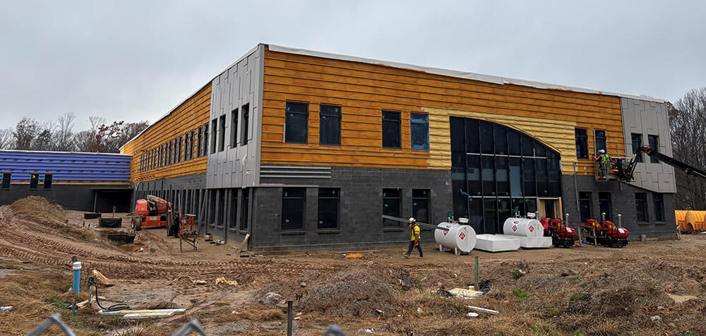 Phase 1 work is complete. Phase 2 site work and Building 1 work is ongoing. The exterior envelope and interior buildout are in progress. Phase 2 completion is tracking for Spring 2026.