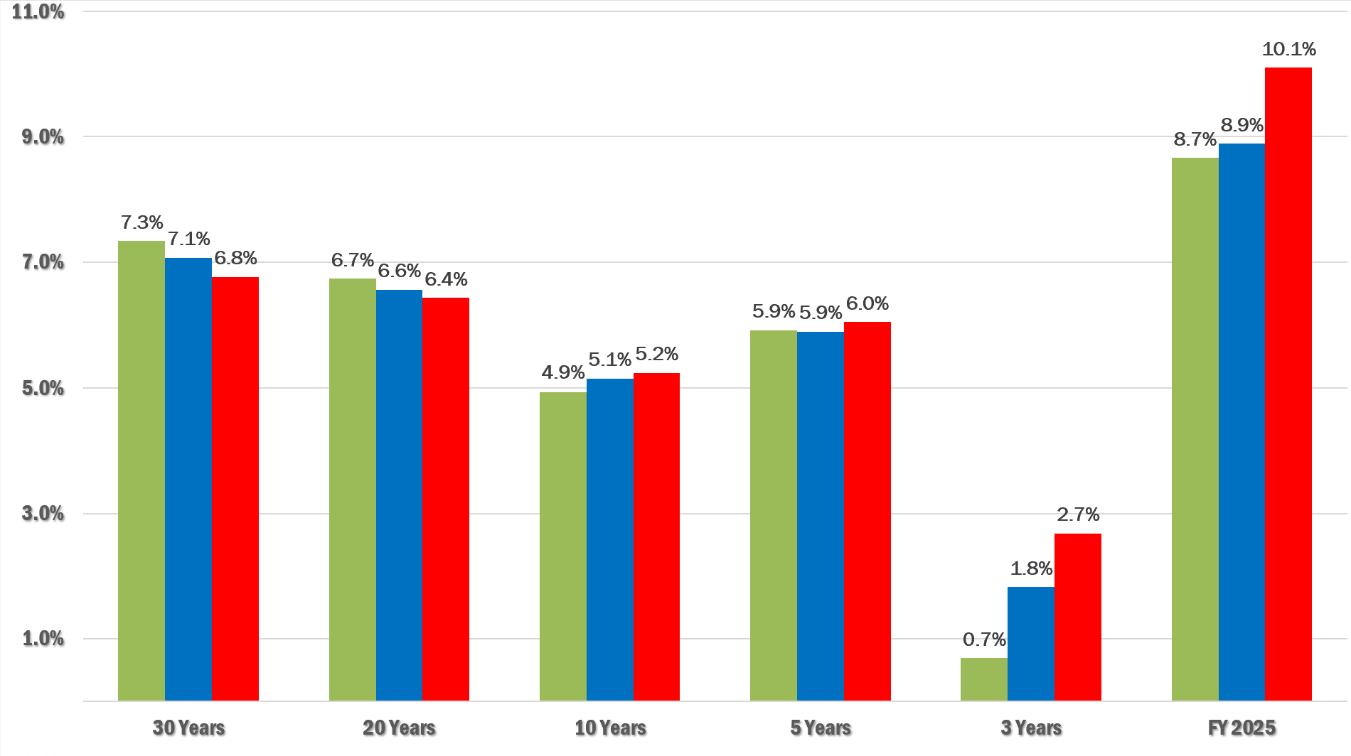 Each of the systems has its own investment portfolio, target allocations, and investment policies. The current allocations by major investment type are summarized in the links below. As of June 30, 2025