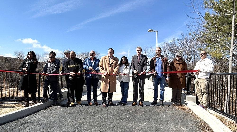 Local elected officials, the Fairfax County Department of Transportation (FCDOT) and other partner county agencies cut the ribbon to official open a new shared use path connecting several Herndon neighborhoods to the Innovation Center Metrorail Station on the Silver Line on Friday, Feb. 27, 2026.