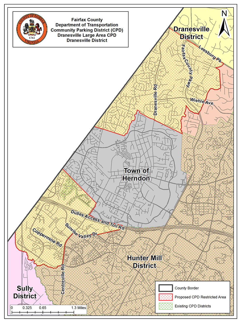 The Fairfax County Department of Transportation (FCDOT) and the Dranesville District Supervisor's Office will host a public virtual meeting on Tuesday, April 7, 2026, from 6:30 to 8 p.m., to present information on the proposed Dranesville Large Area Community Parking District. The proposal calls for parking restrictions within the following boundary area: